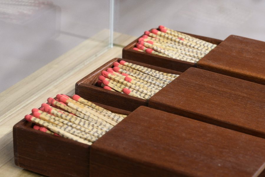 L’opera presenta tre scatole di fiammiferi, con all’interno