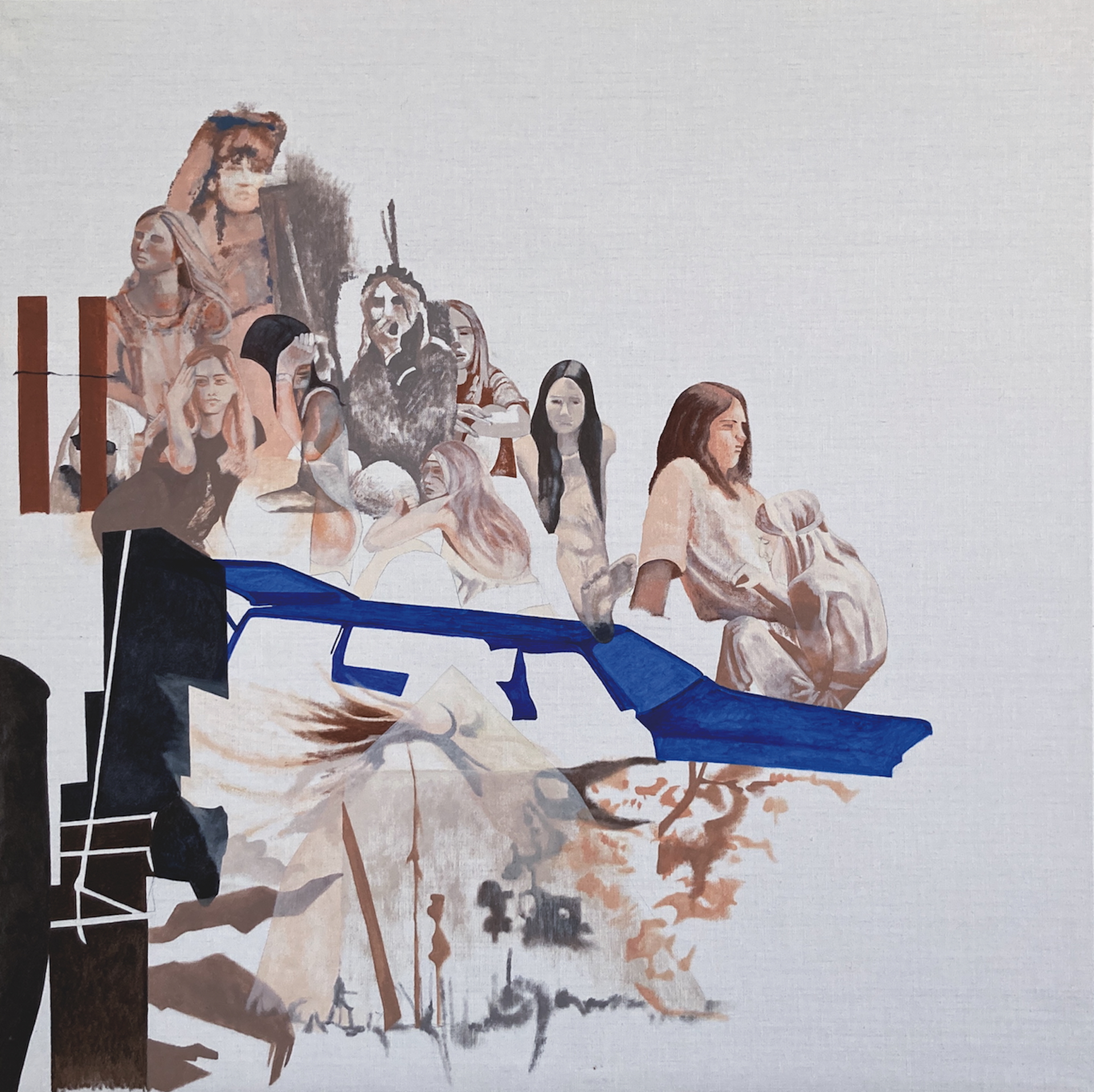 presenza fisica del lì e allora, passano all'etereo con la fotografia. Oggi i frammenti e le ombre sono raggruppate in primo piano sulla tela e danno luogo ad una scultura creata con la pittura.