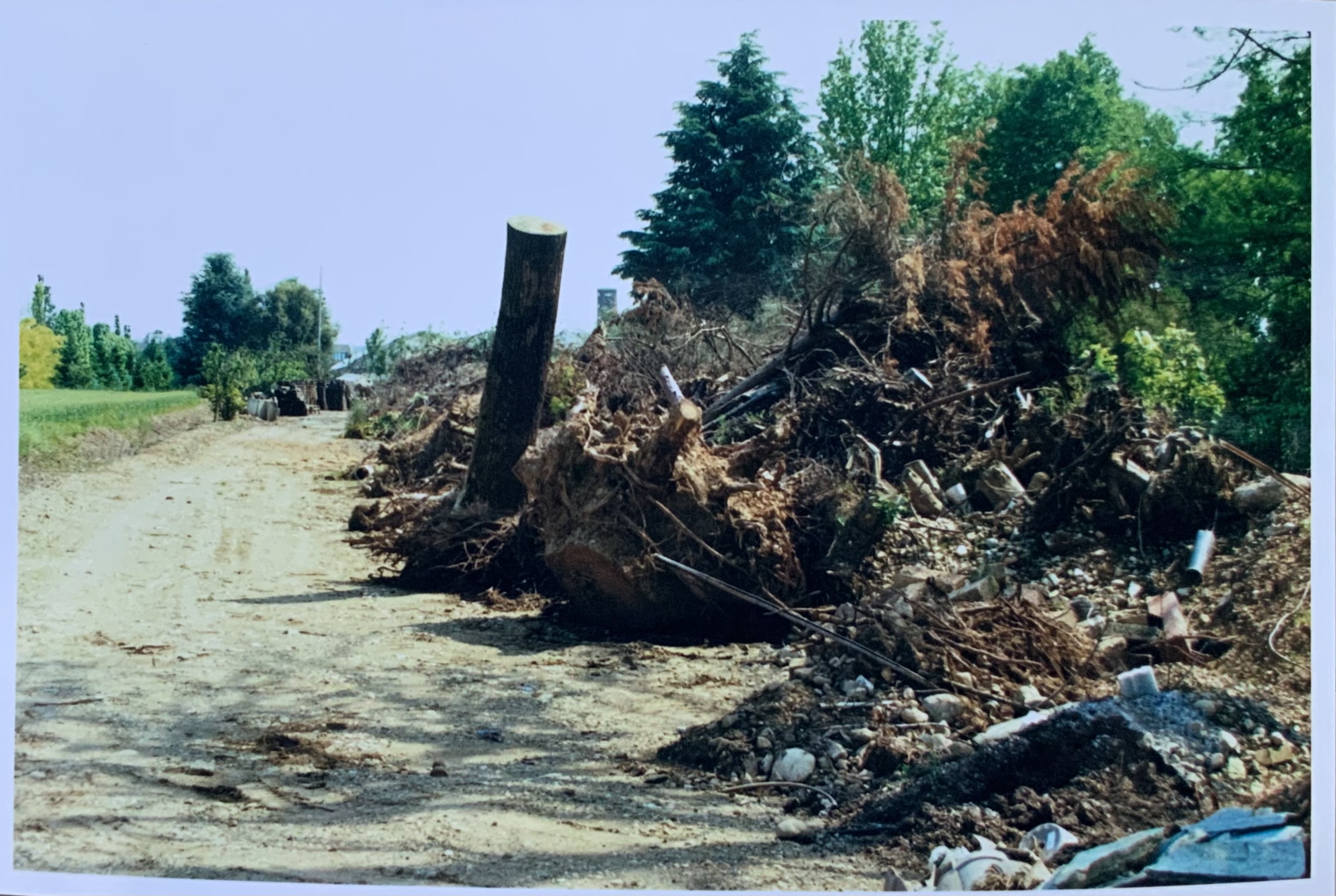 Ho voluto ripercorrere la strada che faceva lui in bici, mezzo che utilizzava sempre, e fotografare solo gli alberi tagliati o strappati.