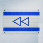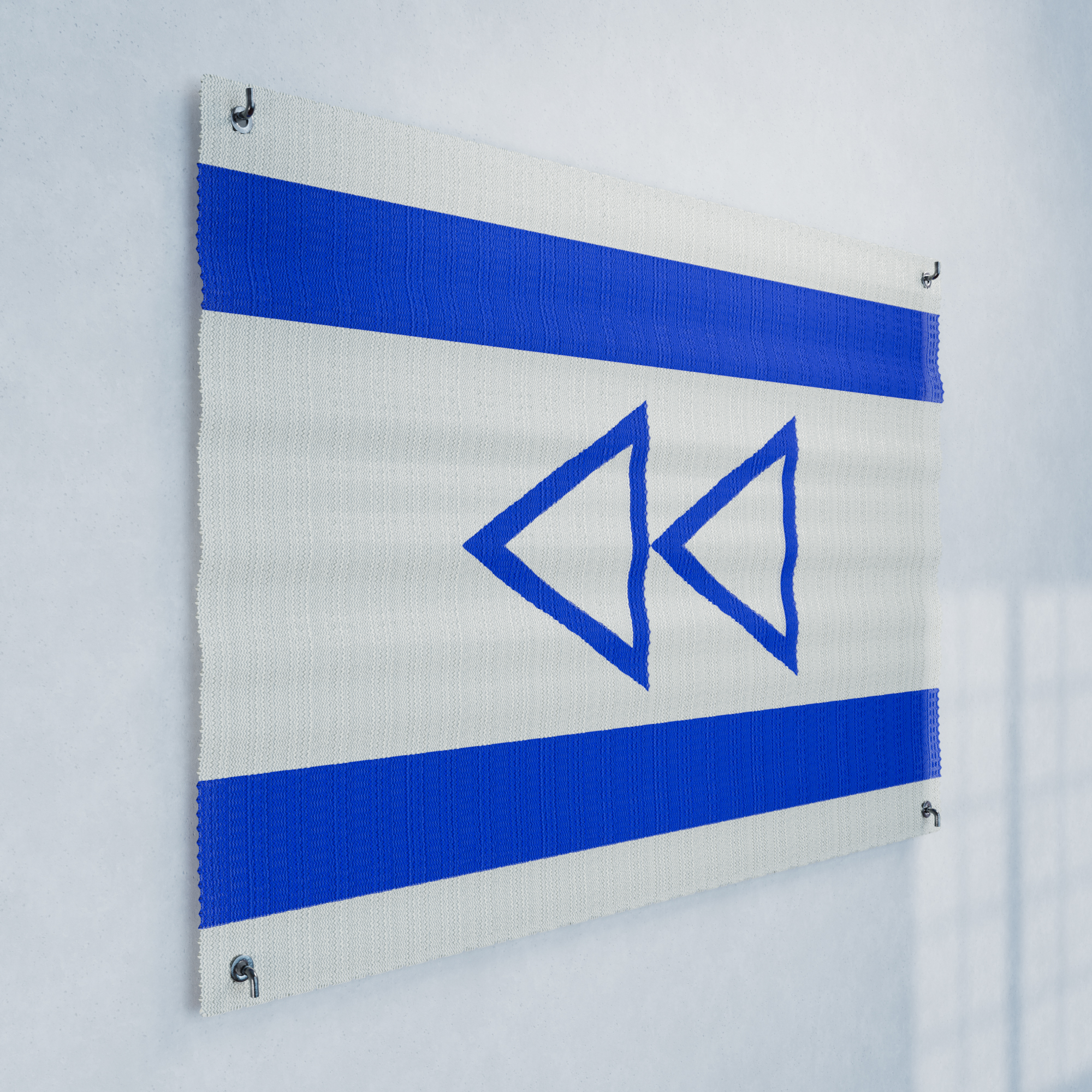 L'opera, intitolata “ReWind”, si presenta come una sottile, ma potente, decostruzione del simbolismo nazionale. La bandiera, consuetudine che rappresenta unità e identità, viene qui smembrata: la Stella di David, emblema di un'eredità inossidabile, si frammenta. I due triangoli, separati dalla loro sovrapposizione armonica, si affiancano per tracciare un'icona di "rewind".