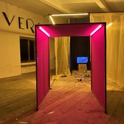 L’installazione pensata per un ambiente aperto come quello di una spiaggia vuole portare lo spettatore a cambiare la propria visione adottando un nuovo punto di vista, una diversa percezione. Questo ribaltamento della realtà diventa visibile nella sfera in vetro che riflette il paesaggio al suo interno invertendone il senso e lo spazio.