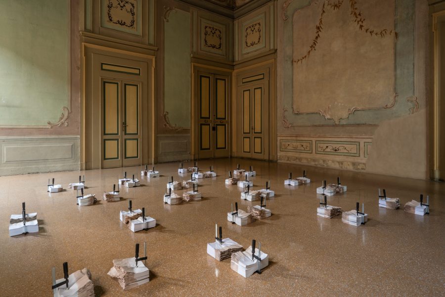 Ad oggi è un'installazione di 20 "blocchi" ma mi piacerebbe molto realizzare un’installazione più complessa composta da 100 di questi pezzi, creandola attraverso il coinvolgimento delle persone in un laboratorio.