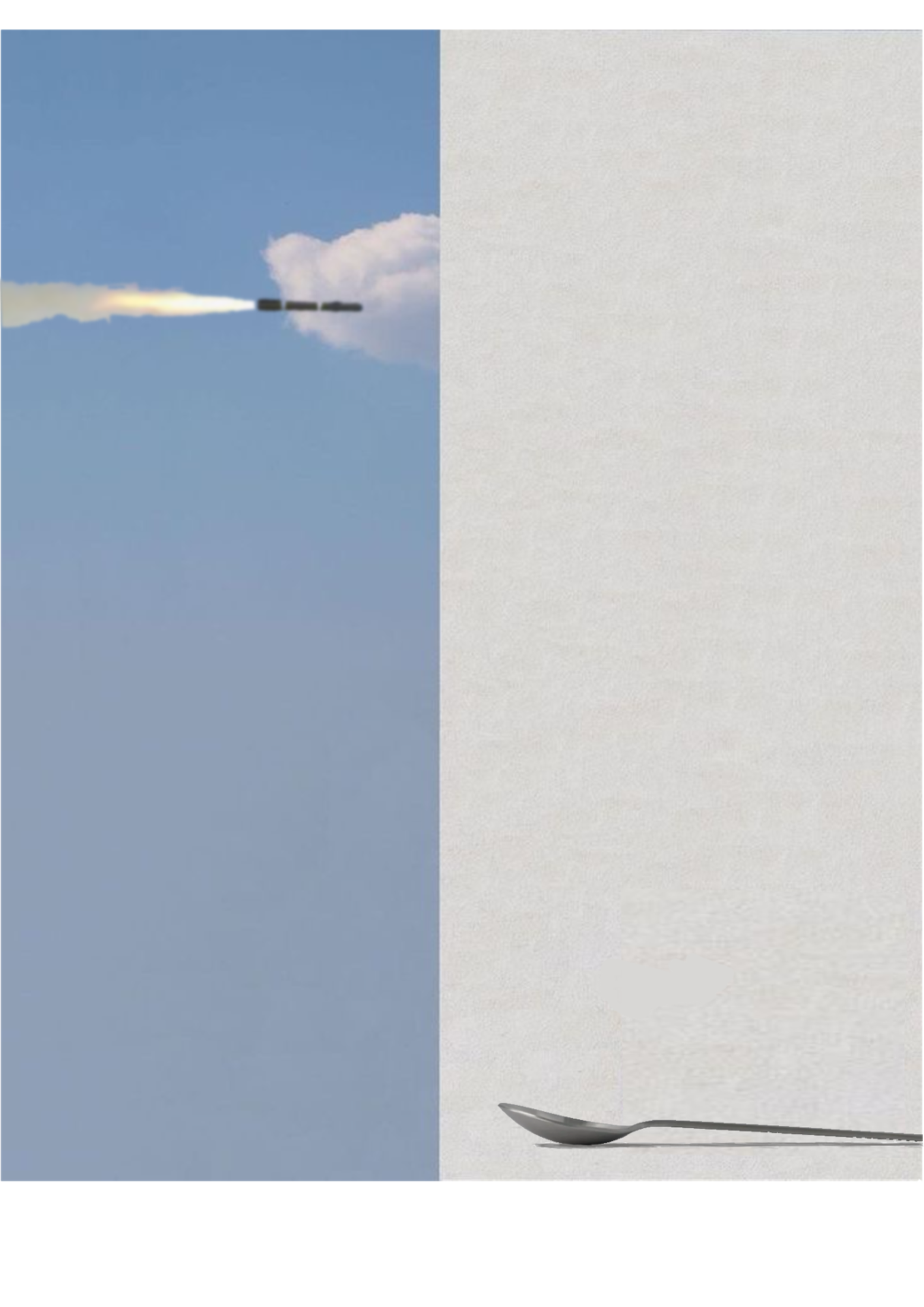 Un cucchiaio e un missile abitano lo stesso orizzonte visivo, separati solo da una distanza apparente.