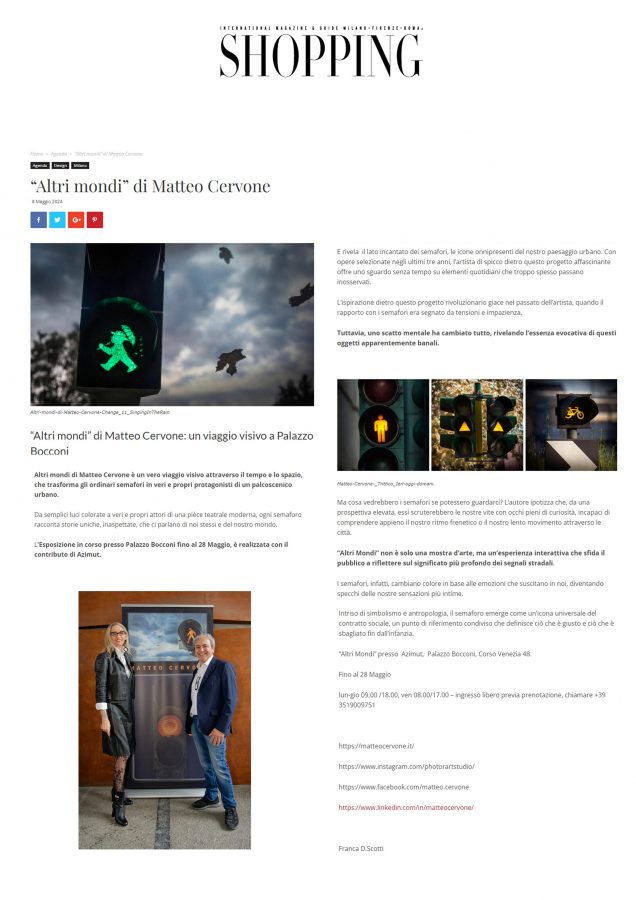 “Singing In The Rain” é stata pubblicata nei seguenti media: BuongiornoOnLine digital maggio 2024; Shopping MilanoRoma digital maggio 2024; La Semaforica Srl monografia Signal Art & Design onpaper Marzo 2026