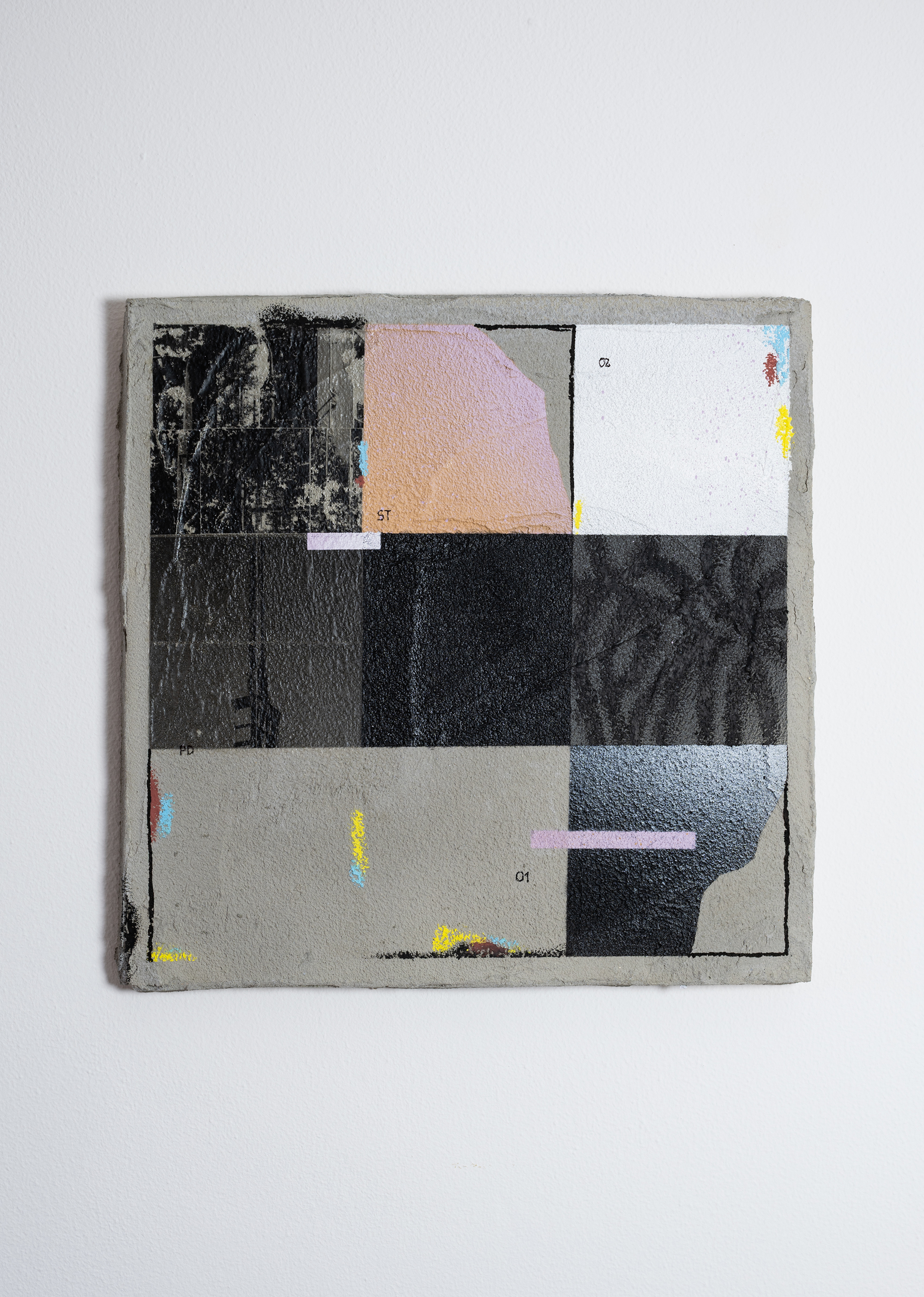opera STPD0101 categoria Altro soggetto Architettura, Astratto, Paesaggio tags base 40 cm altezza 40 cm profondità 0 cm anno 2025 Spray, trasferimento fotografico, pastelli ad olio e marker su cemento. 0 likes 0 commenti