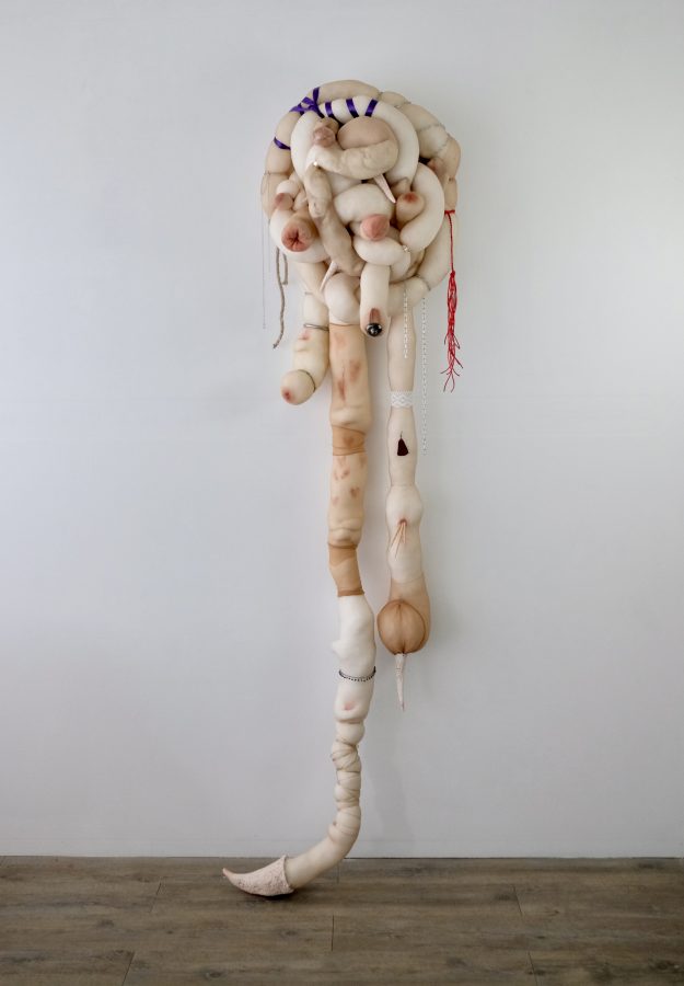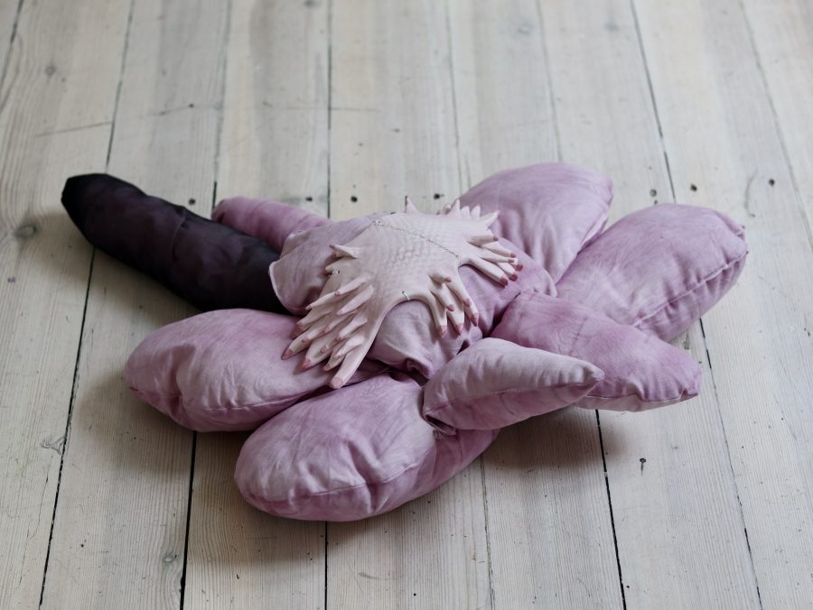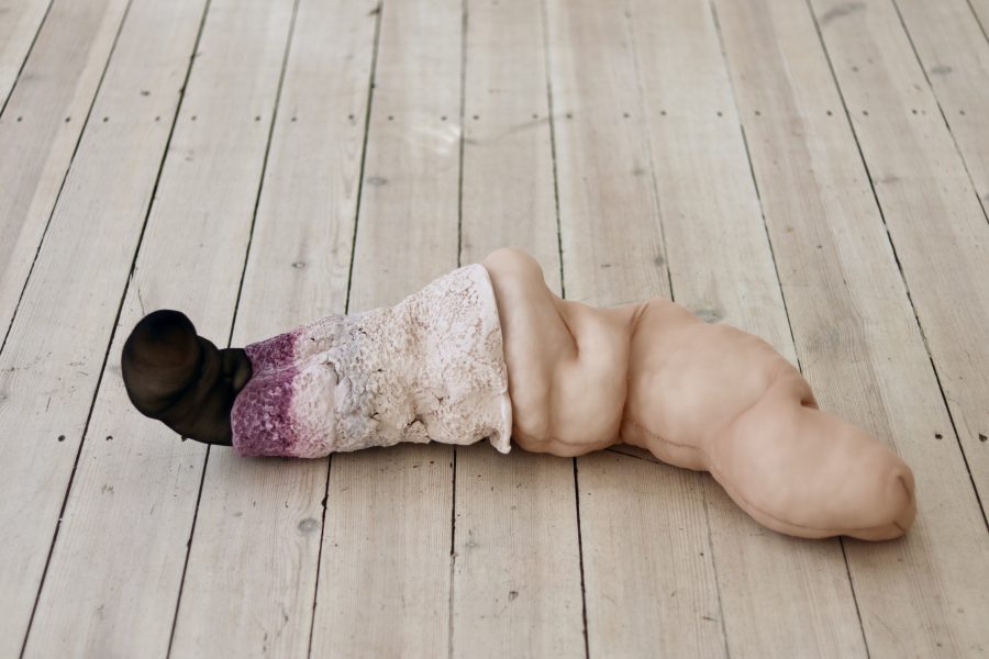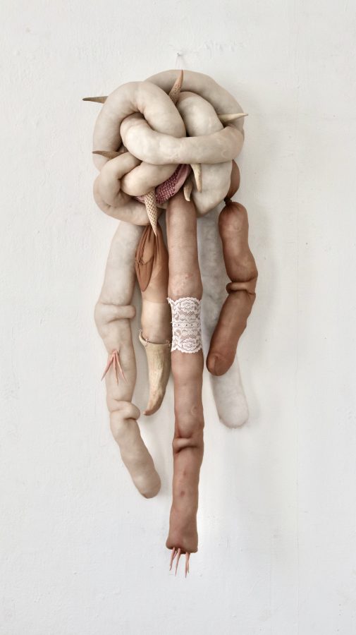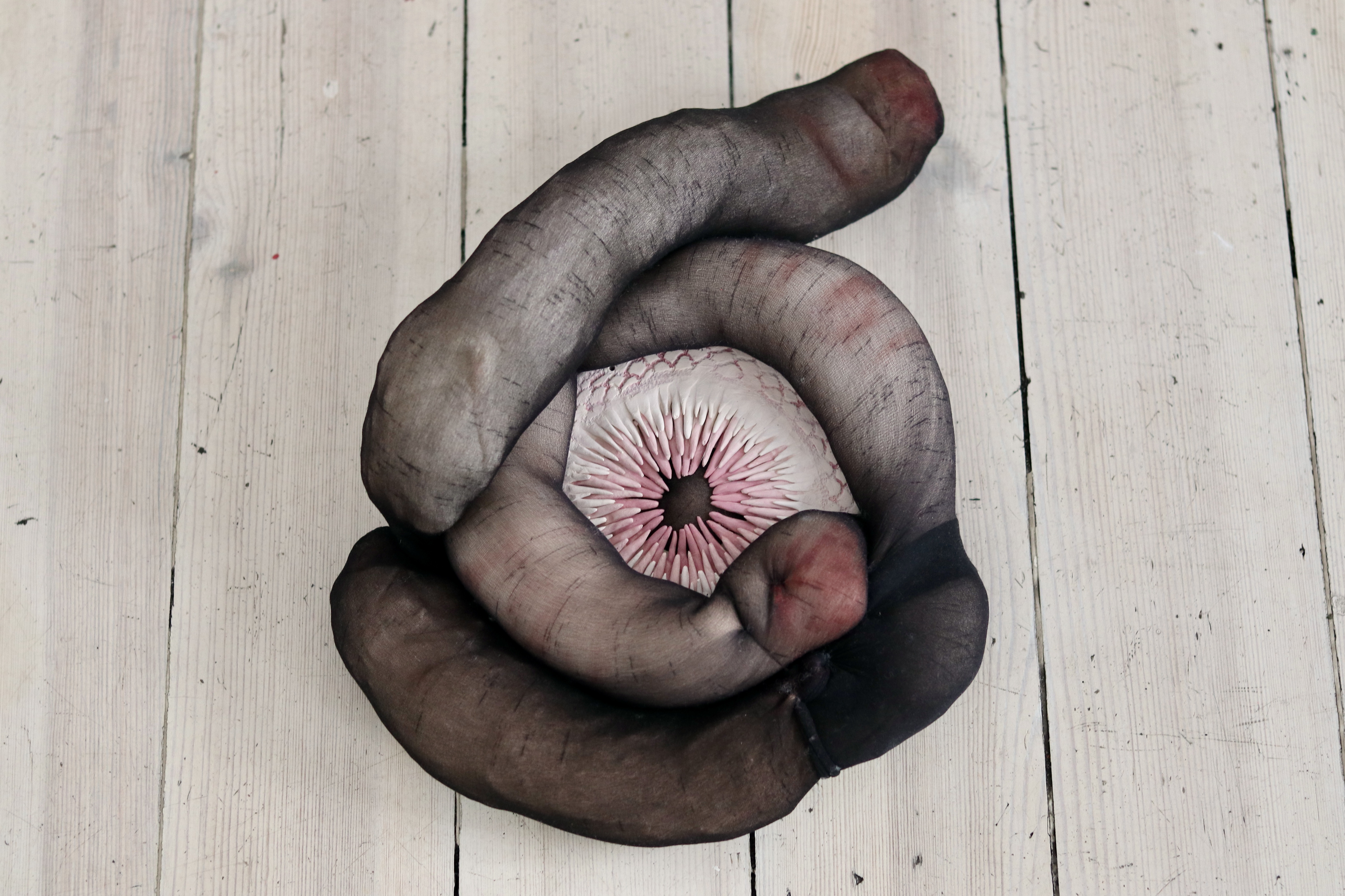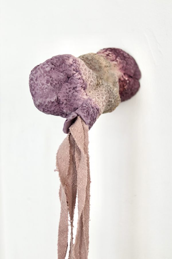 Questi concetti sono emersi come fulcro della ricerca più recente di Camilla Marinoni, un'esplorazione nata dalla lettura dei testi del filosofo Jean Luc Nancy e del filosofo della biologia Telmo Pievani. Durante i tre mesi di residenza, Marinoni ha creato una serie di lavori che spaziano dall'ambito scultoreo a quello installativo. Intrecciando tessuto e ceramica, ha combinato materiali naturali quali cotone, lino, legno e ferro, insieme a elementi organici diventati consuetudine per l'artista, come il vino e il trucco. Inoltre, ha arricchito i lavori con una nota di intensità viscerale, mediante l'utilizzo di un calco in gesso dello stomaco di un bovino, contribuendo così a enfatizzare la profondità emotiva delle sue sculture.