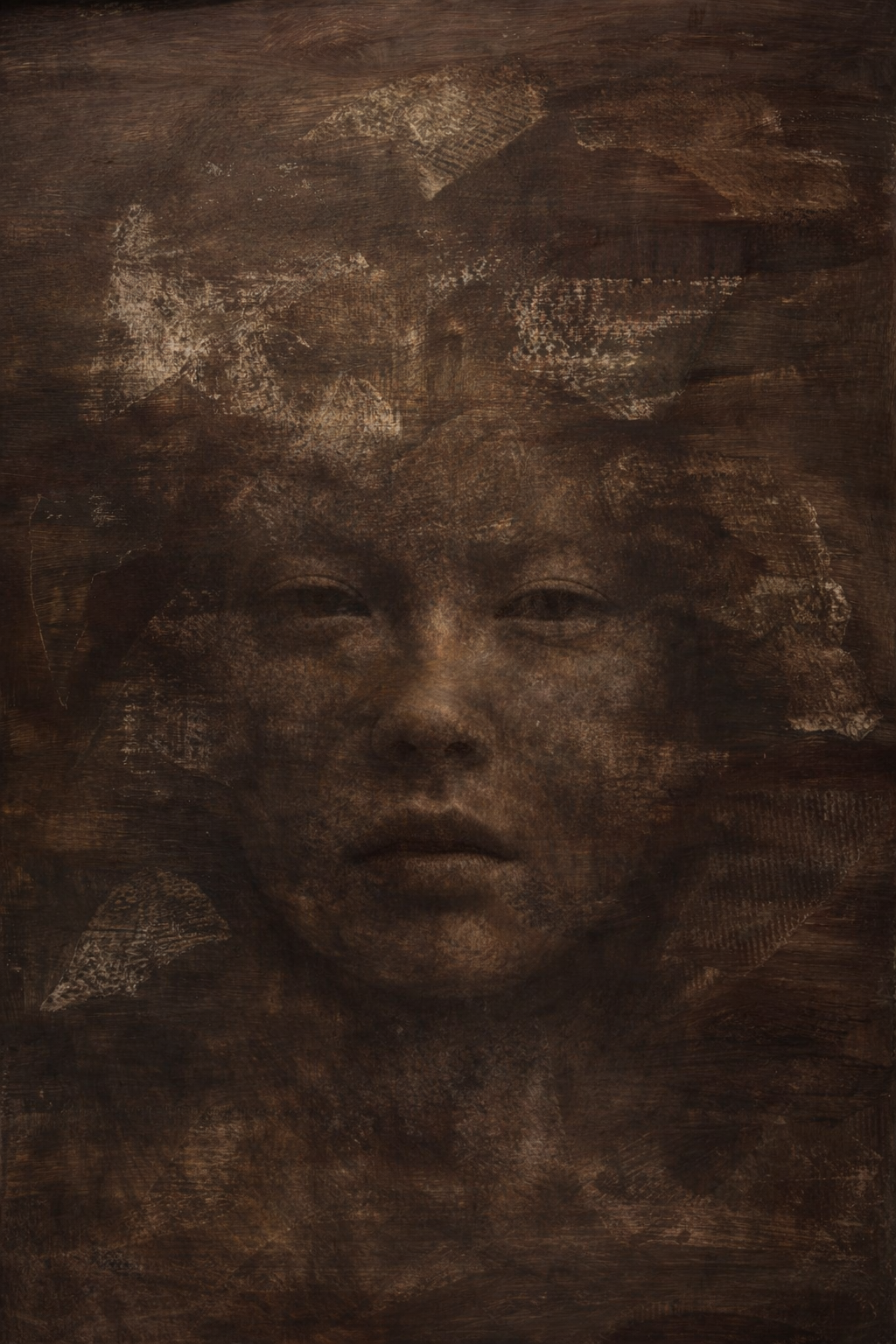 Acrilico. Canvas con telaio. Il tempo non scorre: si deposita, velatura dopo velatura, trasformando l’identità in superficie viva e mutevole.