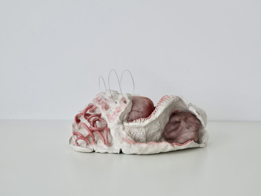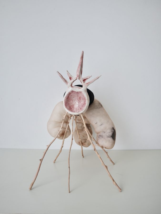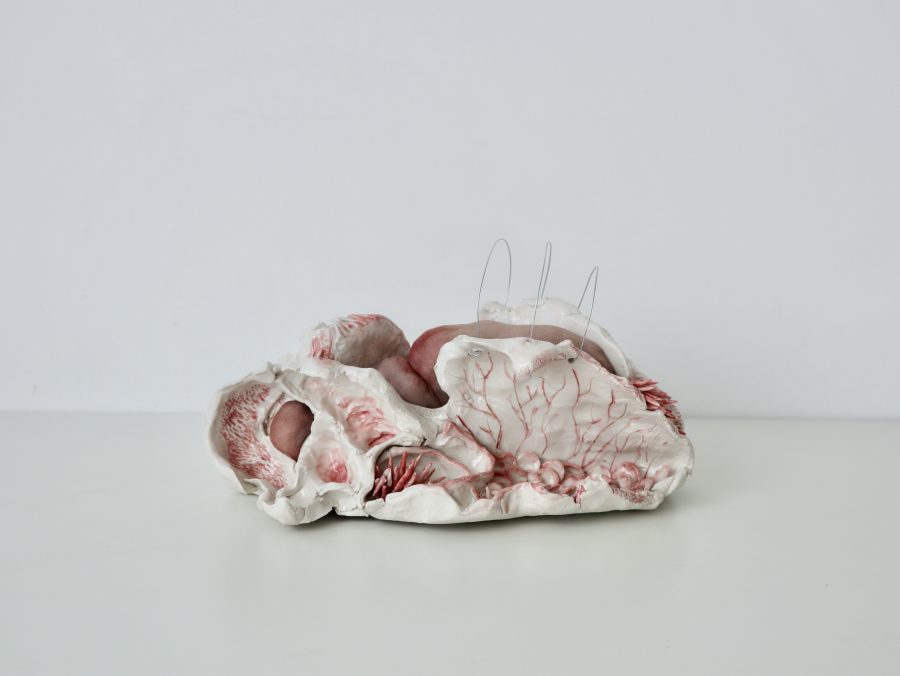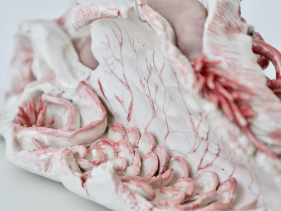Torace, bacino, colonna vertebrale sono solo punti di partenza, matrici che vengono attraversate, deformate, rese altro. La porcellana, fragile e resistente insieme, diventa osso che ha perso la sua funzione e ne ha acquisita un’altra: non più sostegno, ma rivelazione.