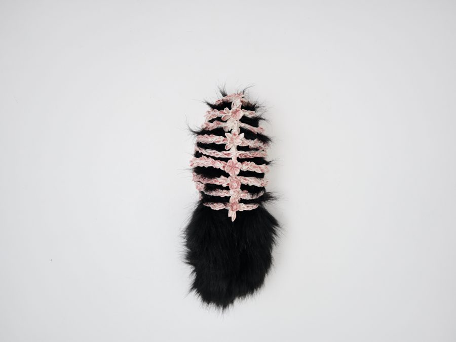 Le superfici trattengono tracce: pelliccia, spine, ferro, vino, make-up. Elementi che parlano di attrazione e difesa, di cura e ferita, di desiderio e controllo. Nulla è illustrativo. Tutto è allusivo.