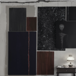 tavoli e supporti in legno, lampade con paralume, fari, faretti, lampadari con cristalli, tappeti, divanetto in velluto, tende