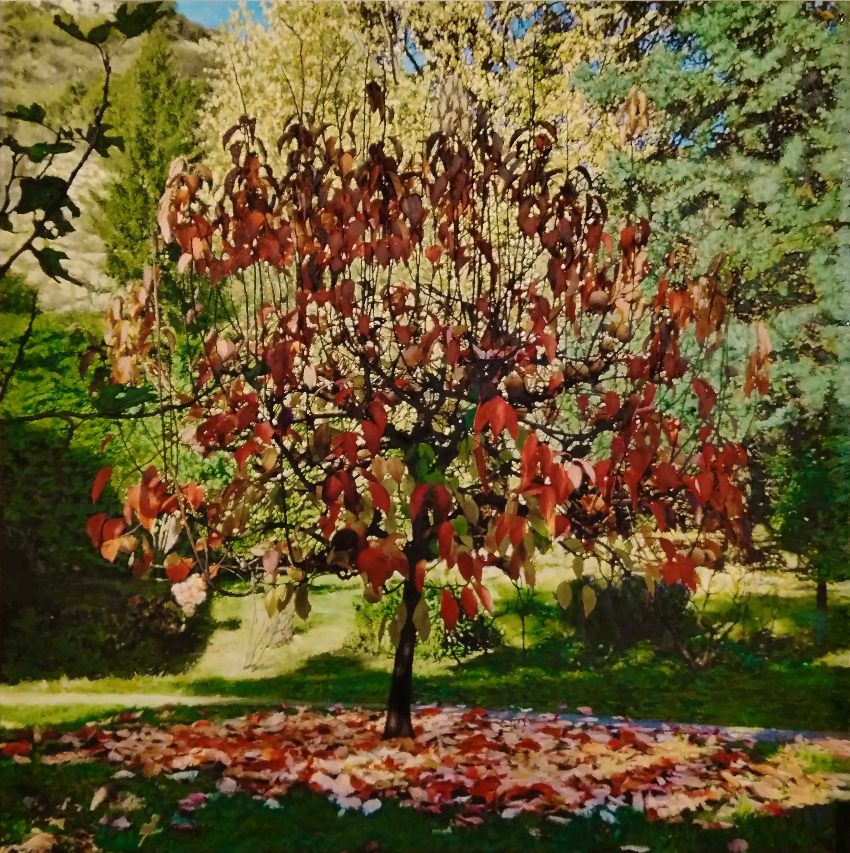 opera Syncretic 2 categoria Pittura soggetto Natura tags albero, giardino, frutti, luce, sole base 120 cm altezza 120 cm profondità 4 cm anno 2025 olio su tela, montata su telaio di legno 0 likes 0 commenti