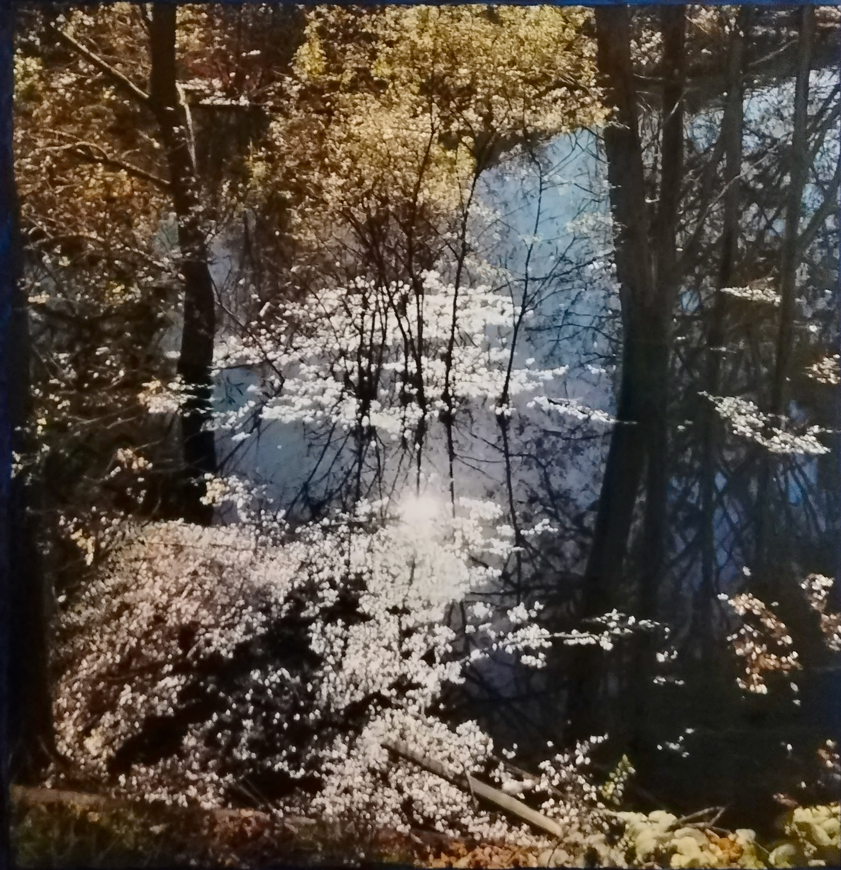 opera Syncretic 4 categoria Pittura soggetto Natura tags acqua, luce, sole, alberi, riflessi base 110 cm altezza 110 cm profondità 4 cm anno 2025 olio su tela, montata su telaio in legno 0 likes 0 commenti