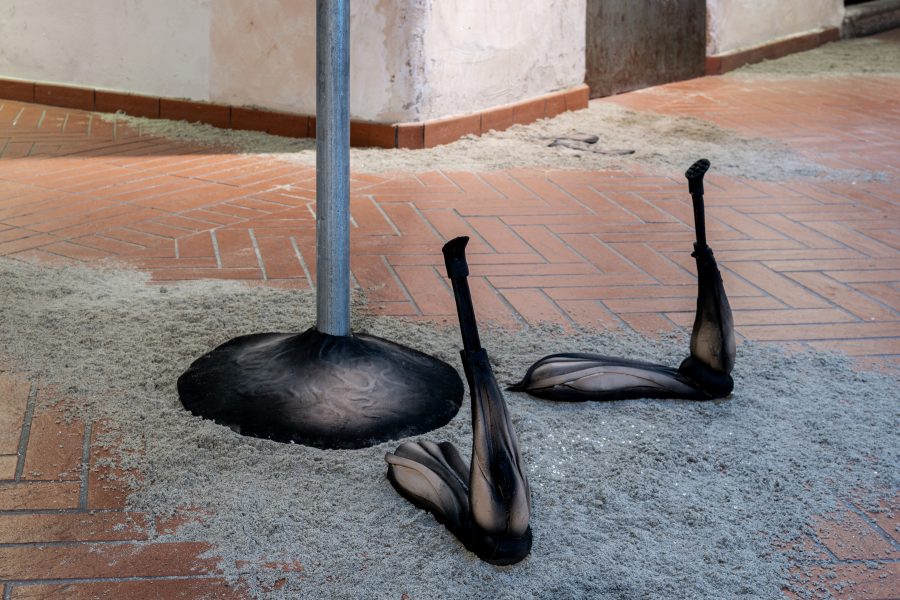 nascono dalla combinazione di elementi industriali, materiali organici e residui urbani raccolti nei territori attraversati quotidianamente dall'artista: scarti e frammenti che, attraverso processi di modellato scultoreo, assemblaggio, riattivazione e formatura, si configurano come nuove entità corporee ibride. In questo gesto di ricomposizione, l'opera diviene un dispositivo condiviso di memoria e rappresentazione contemporanea, capace di interrogare il modo in cui la nostra relazione attiva con la materia partecipa ai processi di
