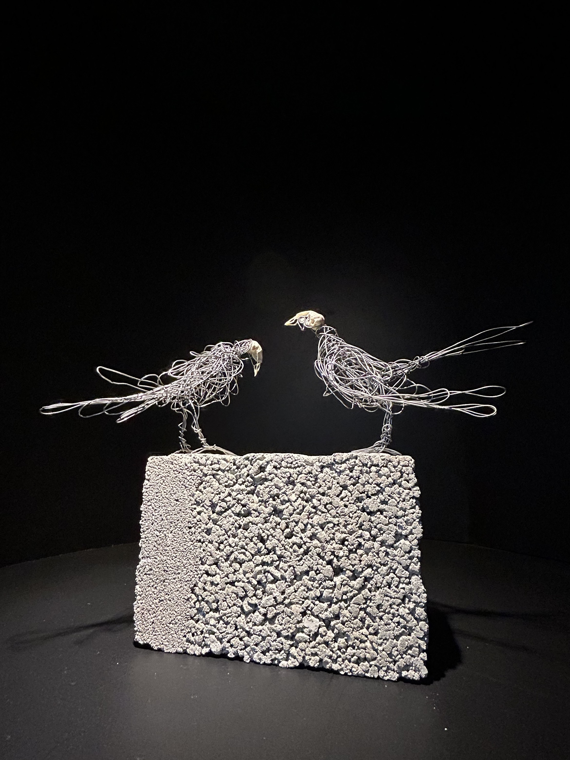 opera Merli categoria Scultura soggetto Animale tags base 30 cm altezza 29 cm profondità 18 cm anno 2025 Materiale organico, acciaio e agglomerato cementizio, opera unica 2 likes 0 commenti