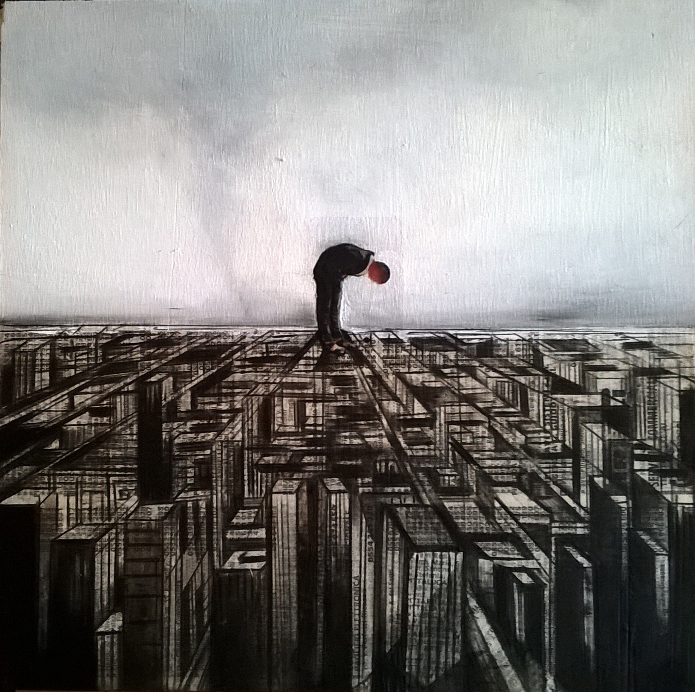 Tavola, tecnica mista ( bitume, cera, pastello, grafite, gesso, acrilico, olio, carta ), pezzo unico, serie ''Case e case''.